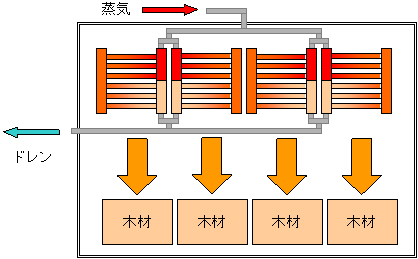以前は主に海外の大型集成材ラミナ工場向けの乾燥機として活躍していましたが、近年は国内での羽柄材や集成材ラミナの乾燥の需要が増加し、板材の大量生産工場向け乾燥機として脚光を浴びています。