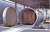 | 加圧/減圧前処理装置 蒸気式乾燥機では背割りの入っていない芯持ちの柱や、梁、桁に使う平角を乾燥させるのは困難です。そこで蒸気式乾燥を行う前に前処理として加圧減圧前処理装置で前処理する方法があります。前処理装置で処理する事により高品質化、乾燥時間短縮が可能となります。 スギの黒芯の脱色もできます。 |